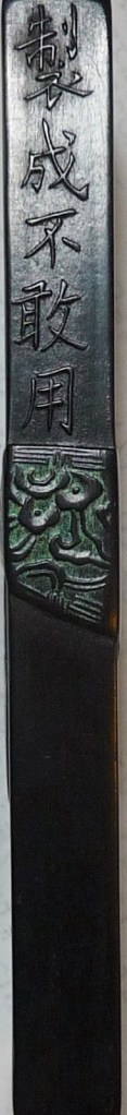 蘇東坡愛墨,自述「余蓄墨數百挺」。綜合他的詩和筆記內所言,可知他有李廷珪、張遇、李承晏、潘谷、裴言、清悟、東野暉、王晉卿(名詵)等人的。然而在用蜀地產的「冷金箋」紙來試寫之後,他發出「惟李廷珪乃黑」的結論!(註四)顯然潘谷墨沒李廷珪的黑。